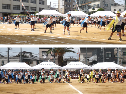 一番の見どころは、やはり団体演技のサイ&コーでスズランテープの飾りがとてもかわいらしく、学年人数も最も多い2年生の舞は、見ている人にも大きな感動を与えているようでした。