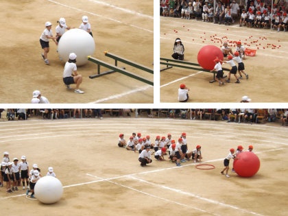 元気玉も途中、平均台の障がい物を設置していましたが、練習の成果通りそれぞれがんばって通過していました。
