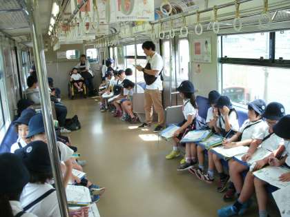 6月8日(水)3年生が、環状線に乗って大阪の街を調べました。大阪城、通天閣、阿倍野ハルカスが見えるたびに歓声があがりました。お客さんが乗ってくると席を譲るなど、マナーも良かったです。