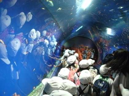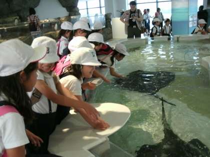 6月17日(金)海遊館へ社会見学に行ってきました。10時開館と同時に一番に入り、ゆっくりと見学することができました。ジンベイザメに餌を与えるところを見たり、エイに触ったりすることができて、子どもたちは大喜びでした。