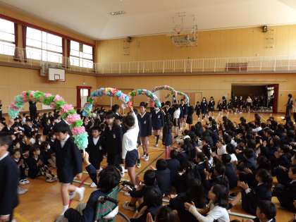 アーチをくぐり入場し,あたたかい拍手で迎えられました。