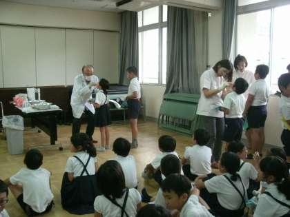 先日、4年生の歯みがき指導とフッ化物塗布が行われました。