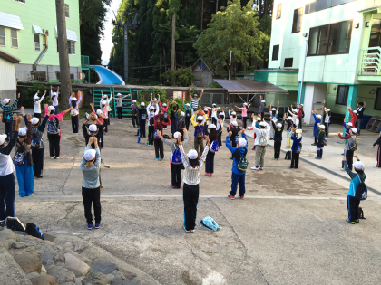 昨日から皆ぐっすり眠れたようで、ラジオ体操で元気よく体を動かしていました。