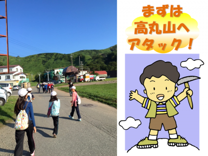 ラジオ体操終了後は宿舎で朝食を受け取り、まずは「高丸山」へ移動を開始しました。
