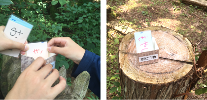 いざ始まってみると、グループの中でも左右に手際よく分かれたり、一見パスしてしまいそうなところもていねいに見まわったりと、どの班もたくさんのカードを手に入れたようでした。