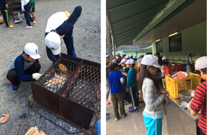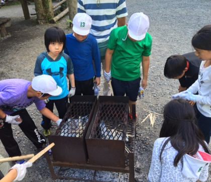 食材の用意や火起こしなど、それぞれが分担した役割りをがんばるのですが、火起こしが苦戦したようです。