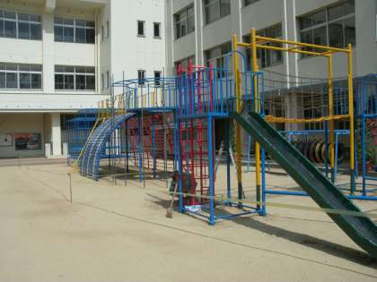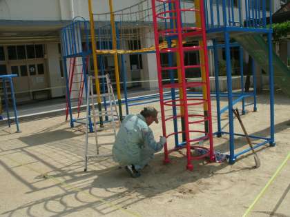 35度をこえる暑い日が続きます。今日は、管理作業員さんが傷んでいた遊具をきれいに塗装しました。2学期に向けて、校内がどんどんきれいになっています。