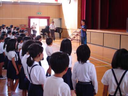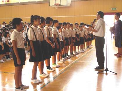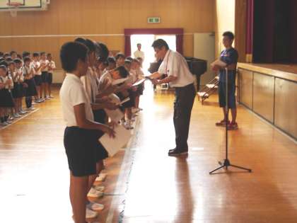 夏休み中の7月27日に、門真市にある「なみはやドーム」で学童泳力記録会に参加した児童に校長先生より記録証が渡されました。