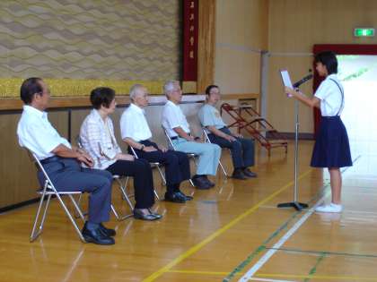 9月14日(水)地域の75歳以上の方々に、日ごろの感謝を込めて、全校児童で手紙に書きました。5人の地域の代表の方に来ていただき、今日手紙の贈呈式を行いました。児童は地域の方々に守られ、すくすくと育っています。