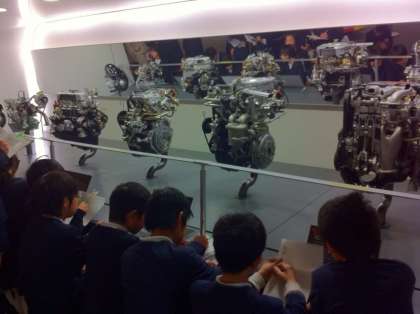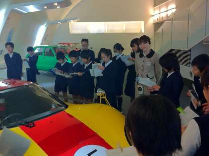 前半は、実物資料でダイハツや自動車の歴史と未来の車について学びました。