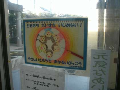 いじめアンケートご協力ありがとうございました。アンケートをもとに、解決していないものは担任から事実確認をして対応しました。その結果や途中経過については、懇談会でお知らせしました。今後も、気になることがありましたら、いつでも担任にご相談ください。