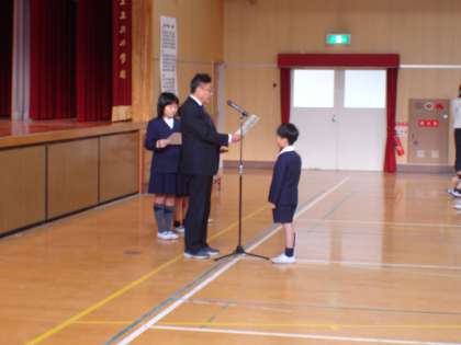 12月22日(木)今日は、2学期の終業式です。全校遠足、社会見学、学芸会などみんなで力を合わせて頑張った2学期だったと思います。冬休み、宿題は自分で計画を立てて、できるだけ年内に済ますことと、年末おうちの手伝いをすることを児童に伝えました。最後に、きちんと服装を整えて給食をいつも頑張っていたクラスを表彰して終業式を終えました。みなさん良い年をお迎えください。