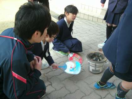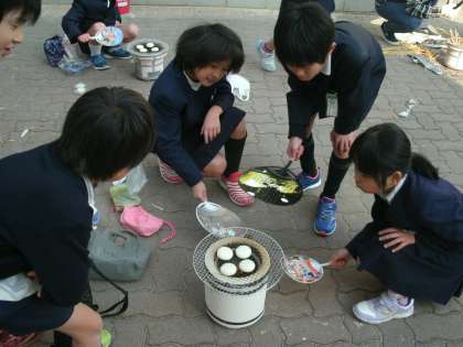 1月21日(土)3年生が「昔の暮らし」を体験するために、七輪を使っておもちを焼きました。わらを使って炭に火をつけました。マッチをするのが初めてという子が、ほとんどです。苦労して、やっとおもちを食べることできました。