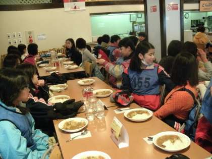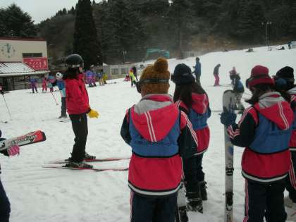 山の上は、雪が降っていました。かなり寒かったのですが、誰一人脱落することなく、最後まで楽しく滑ることができました。