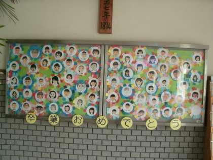 卒業式まで、6年生が登校する日数は7日間です。来週からは、5年生との合同練習があります。玄関の掲示物も、卒業式に向けて新しくなりました。
