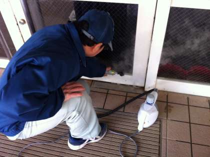 塗装前に頑固な汚れをスチームクリーナーで落とします。