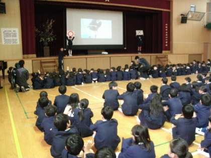本日2時間目「1年生を迎える会」を行いました。児童の代表が歓迎のあいさつをした後、遊具の使い方をビデオで学びました。最後に、みんなでクイズをして楽しみました。
