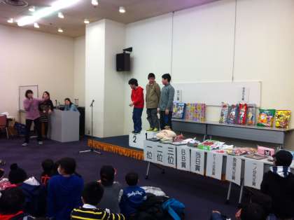 大人も子どもも男女別成績順に3位まで表彰され賞品をもらいました。