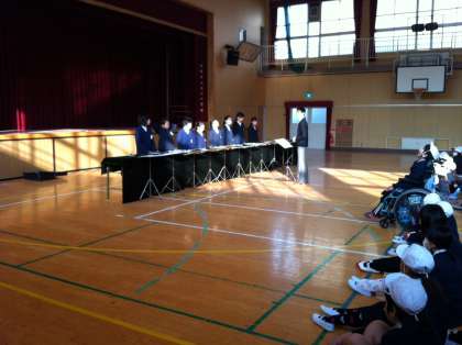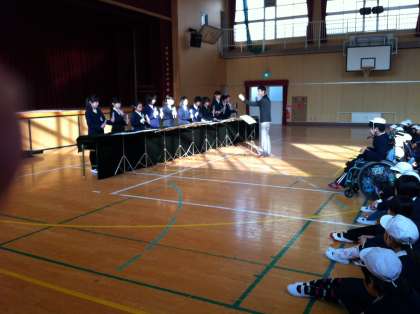 2月17日(月)児童朝会の時に、トーンチャイム演奏会が行われました。