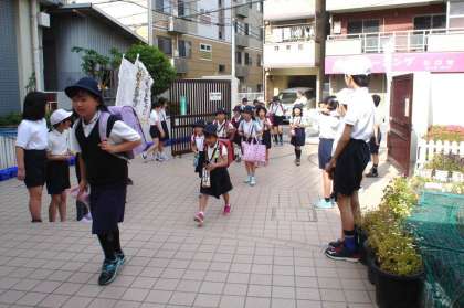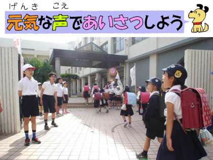 玉川小学校では、今年度の重点に取り組む具体的方策の中にも「朝のあいさつだけでなく、場に応じたあいさつがすすんでできるように、教職員・児童会・地域であいさつ運動に取り組む」とあり、学校説明会でも校長よりあいさつの大切さについてお伝えさせていただきました。