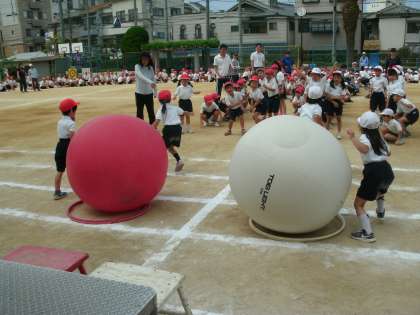 5月23日(火)朝、開会式と全体競技「大玉ころがし」の練習をしました。運動会まであとわずか。児童の気分も盛り上がってきました。