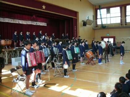 3月7日(金)2時間目から講堂で、6年生の卒業を祝う会を行いました。各学年ごとに、歌や合奏をプレゼントしました。6年生も、在校生のために合奏しました。とても、素敵な会で、みんなの心も温かくなりました。