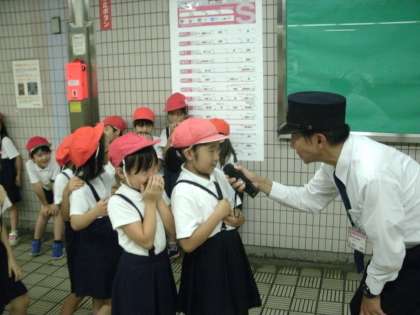 7月4日地下鉄玉川駅に社会見学に行ってきました。券売機の裏側を見せていただいたり、構内でアナウンスさせていただいたりしました。