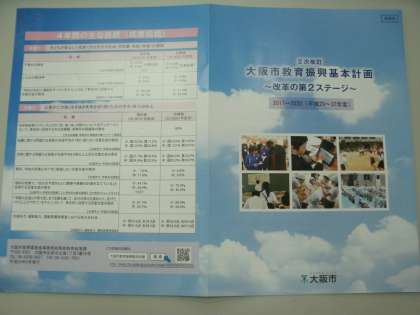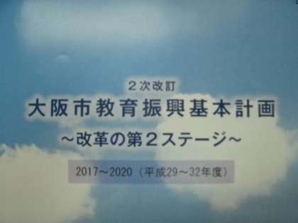 大阪市から出されている「大阪市教育振興基本計画」の資料を、8月31日(水)に配布しました。これには、今後4年間の大阪市が進める教育の方向性が示されています。