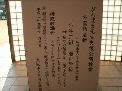 11月9日全市公開授業として、6年2組で外国語活動の授業を行いました。大阪市の他の小学校からも、先生方が参観に来られました。これらの成果は、1月24日玉川小学校で行われる福島支部教員研究発表会で発表します。