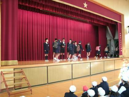 11月24日(金)児童集会で、月曜日から始まる「あいさつ週間」についての説明がありました。班ごとにきちんと挨拶ができているかを、朝児童会のメンバーが調べます。きちんとできている班は、全校児童の前で表彰されます。どの班も、表彰されるように、力を合わせてがんばってください。