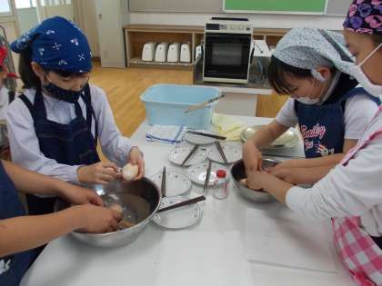 今日は、5年生の家庭科の調理実習でゆでたまごをつくりました。水の量や火加減、ゆで時間などに気を付けながら取り組みました。2クラスとも上手に作ることができました。調理実習の経験を生かして、家庭の朝食などの一品にいかがでしょうか。