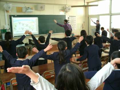 本校では、指導力向上を目指して、全員が公開授業を行っています。本日は、2年2組で英語活動を行いました。絵本の読み聞かせと曜日の学習をしました。子どもたちは、とても楽しそうに活動していました。