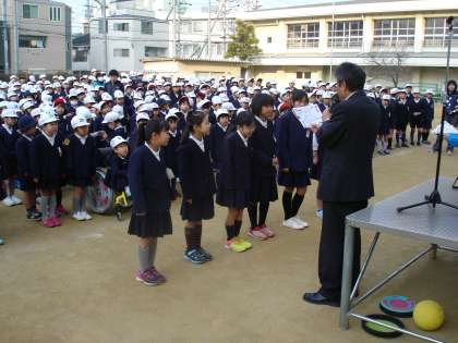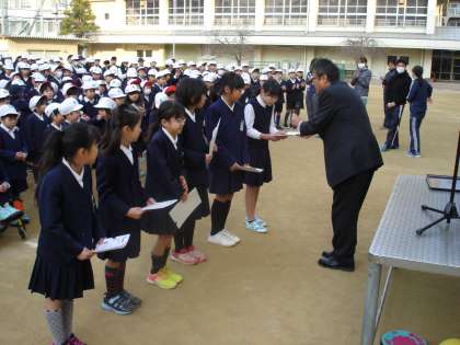 1月29日(月)児童朝会でパークランの発表をしました。男女別学年ごとに1〜3位を紹介しました。参加者は全員完走しました。みんなよく頑張ったと思います。応援ありがとうございました。