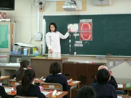 2年生の各クラスで歯科衛生士さんによる歯みがき指導がありました。