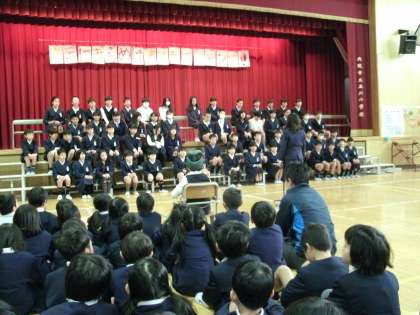 2月28日「卒業を祝う会」を講堂で2時限目にしました。6年生が入場した後、1〜5年生が歌や合奏で祝う気持ちを表しました。教職員も「キセキ」を心を込めて歌いました。お返しに、6年生は「情熱大陸」を演奏しました。