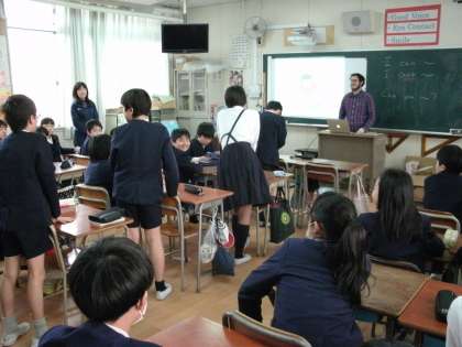 下福島中学校の先生方が、6年生の授業を見学に来られました。新入生の受け入れがスムーズにいくようにとの配慮からです。1組は社会科、2組は外国語活動の授業を見ていただきました。