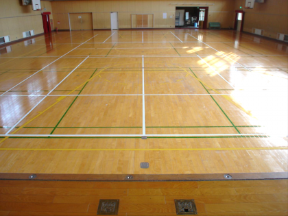 3月27日(火)より数日かけて、業者による講堂の『ライン補修&ワックス塗布』を実施しました。