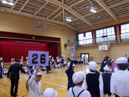 今日は生活班編成がありました。1年生から6年生までのたてわり班活動の初顔合わせです。児童朝会の後、班ごとに集合し、それぞれの教室へ移動して活動が開始されました。6年生は新しいリーダ—として、しっかり下級生をまとめていました。