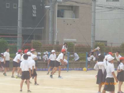 昨日は晴れ。子どもたちが、元気に運動場で遊んでいます。