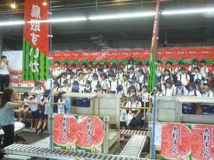 スイカのセリ体験、マグロの解体を見学、おいしいジュースやお土産もたくさんいただき、最後は多目的室でビデオの視聴しました。貴重な体験をさせていただき、本当にありがとうございました。見学したことをしっかりとまとめます。