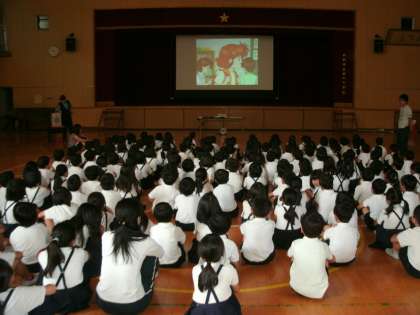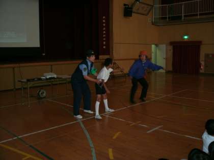 6月14日(土)今日は、土曜授業でした。福島警察署の方に来ていただき、講堂で防犯教室を開いていただきました。不審者に出会った時の、身の守り方を教えていただきました。