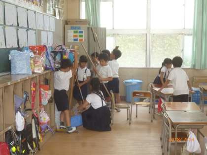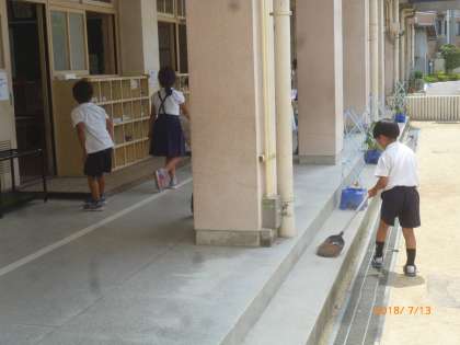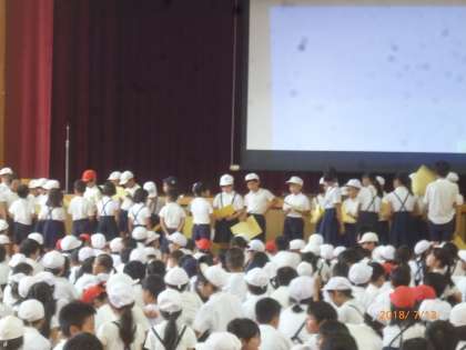 児童集会の後、環境委員会から『金ピカデイ』の表彰がありました。