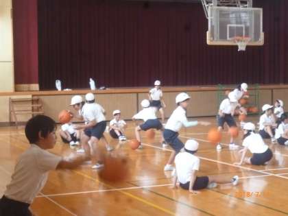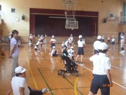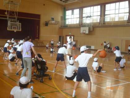 大阪エヴエツサの方々から、5・6年生がバスケットボールを教えていただきました。6年生の活動の様子です。