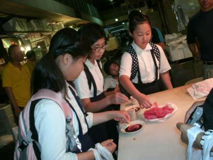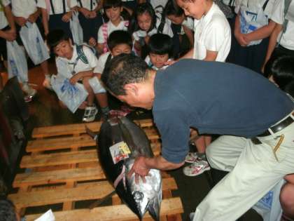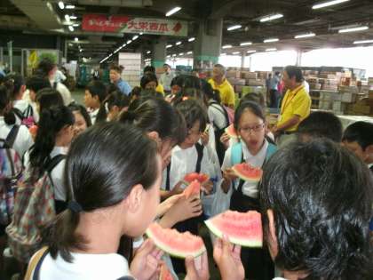 6月30日(月)中央卸売市場に社会見学に行ってきました。果物のせりの様子を見せていただいたり、マグロの解体を実演していただいたりしました。その後、おいしいスイカやマグロを試食させていただきました。ご協力いただいた関係者の皆様に、お礼申し上げます。ありがとうございました。