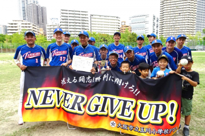 さすがに攻守ともバランスの良い相手チームでしたが、超強打力を誇る玉川小学校は15点を先取後、ギリギリまで追いつかれましたが、ファインプレーが随所で見られ、みごと劇的な優勝を飾ることができました。