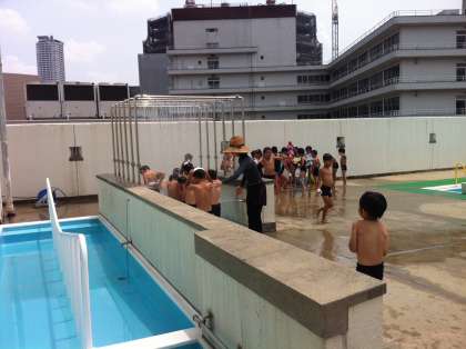 7月2日水曜日1年生がプールに入りました。初めは大きなプールに、こわごわの子も多かったのですが、だんだん水に慣れてきました。下の写真はプールの水をきれいにするろ過装置です。水質を保つ重要な役割をになっています。