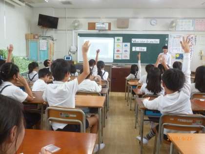 本校の卒業生が9月3日から教育実習を受けています。10月1日で実習が終わります。外国語活動の授業の様子です。これからも授業実践に努めてほしいです。