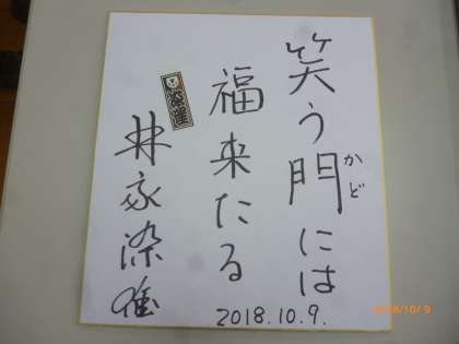 「笑う門には福来たる」の色紙もいただきました。ありがとうございました。
