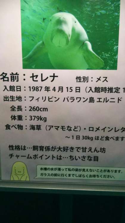 世界最長飼育記録更新中、ジュゴンのセレナです。31年以上、飼育されているとか?