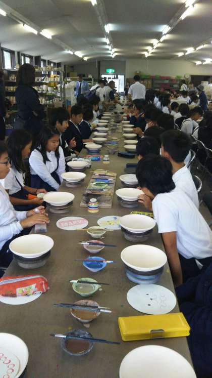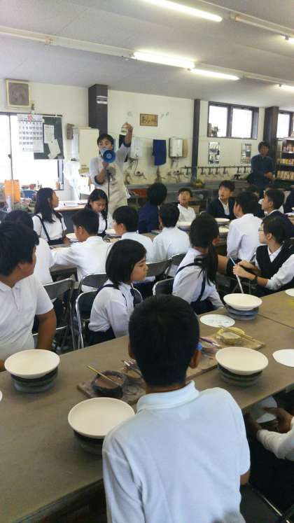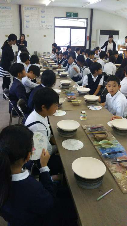 絵付します。説明を聞いています。